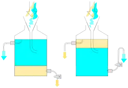 Po lewej – frakcja odzyskiwana cięższa od wody (niebieska), po prawej – frakcja odzyskiwana lżejsza od wody