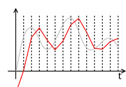 do sygnału wyjściowego przedziałami liniowego w ten sposób, że próbka bieżąca i próbka bezpośrednio wcześniejsza wykorzystywane są do liniowej ekstrapolacji do następnego wystąpienia próbki. Wyjście takiego filtru dane byłoby: