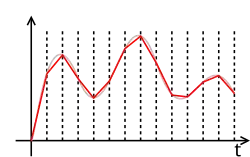 Co prawda fizycznie się tego nie wykonuje, ale identyczny sygnał wyjściowy można wygenerować poprzez zastosowane hipotetycznej sekwencji impulsów Diraca, do liniowego układu stacjonarnego, znanego jako filtr liniowy z takimi charakterystykami (które, dla liniowego układu stacjonarnego, opisane są w pełni przez odpowiedź impulsową) tak, że każdy impuls na wejściu daje na wyjściu poprawną funkcję przedziałami liniową.