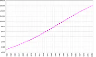 | Zmiana liczby ludności Ekwadoru w latach 1961–2003 (w tysiącach) | ||||||||||||||||||||||||||||||||||||||||||||||||||||||||||||||||||||||