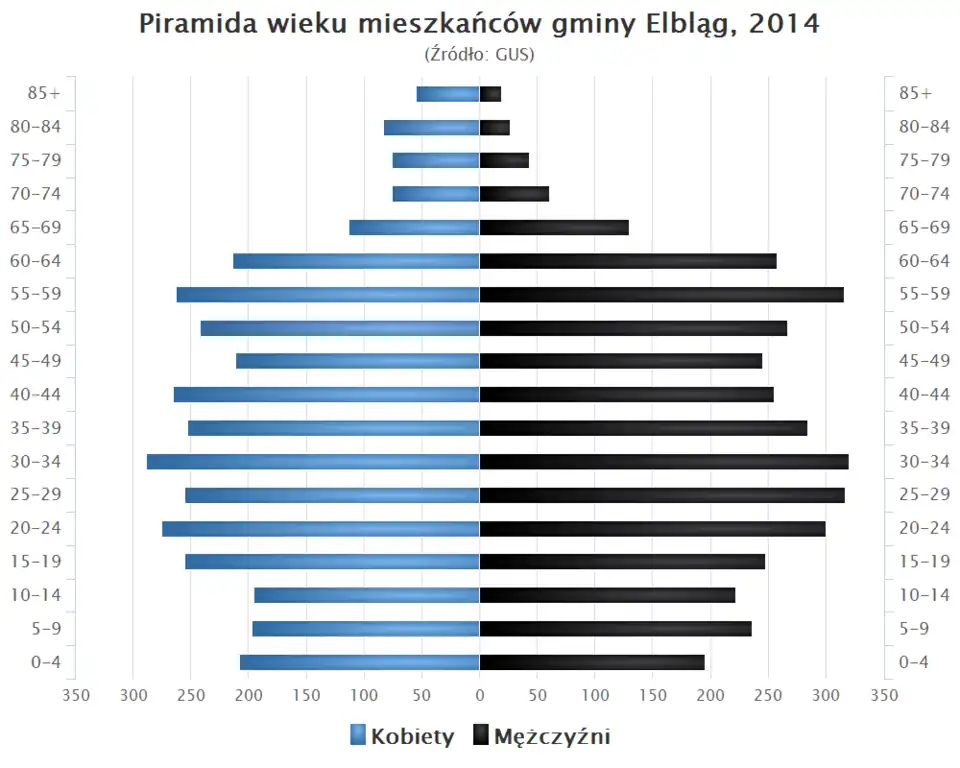 - Piramida wieku mieszkańców gminy Elbląg w 2014 roku[1].
