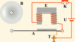 W dzwonku elektrycznym po włączeniu prądu elektromagnes przyciąga młoteczek do dzwonka. Ruch młoteczka przerywa obwód elektryczny i sprężynujący młoteczek powraca do poprzedniej pozycji. Wówczas prąd zaczyna znowu płynąć i sytuacja się powtarza. Dzwonek dzwoni tak długo, aż prąd zostanie wyłączony.