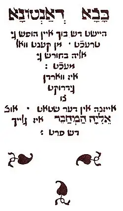 Tworzył również adaptacje popularnych włoskich powieści na jidysz, z których do czasów obecnych zachowało się tylko Bowa d’Antona z 1507 r. (zwana także Bowe-buch, oparta na włoskiej wersji angielskiego romansu Bevis of Hampton)[6] – dowcipna i pełna wdzięku powieść. Zachowały się ponadto (z obszernej twórczości w jidysz) dwa paszkwile.