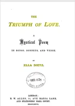 - Ella Maria Dietz Clymer: The Triumph of Love. A Mystical Poem in Song, Sonnets, and Verse. Archive.org, 1877. [dostęp 2017-06-25]. (ang.).