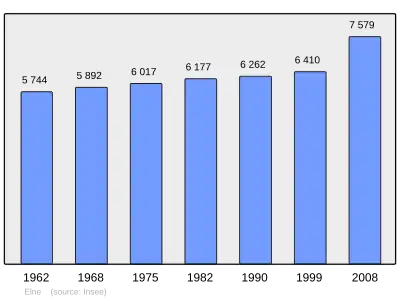 Według danych na rok 1990 gminę zamieszkiwały 6262 osoby, a gęstość zaludnienia wynosiła 294 osoby/km² (wśród 1545 gmin Langwedocji-Roussillon Elne plasuje się na 44. miejscu pod względem liczby ludności, natomiast pod względem powierzchni na miejscu 347.).