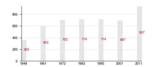- ↑ Dane statystyczne z lat 1948-1995. [w:] Israel Central Bureau of Statistics [on-line]. [dostęp 2013-04-26]. (hebr.).