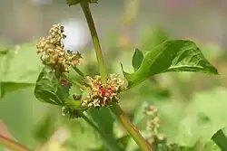 - Jednopłciowe, zebrane w kłosy, rozwijają się w kątach pędów lub na ich szczytach. Listki okwiatu mają kształt od owalnego do podłużnego i mierzą do 2–6 mm długości[6].