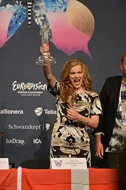 ![]() Emmelie de Forest podczas konferencji prasowej po wygraniu 58. Konkursu Piosenki Eurowizji w Malmö, 18 maja 2013 | |