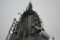 Oryginalny maszt na szczycie wieżowca mierzył 20,5 metra i pierwotnie miał służyć do cumowania sterowców, jednak po nieudanych próbach z ich cumowaniem postanowiono wykorzystać maszt w celach komunikacyjnych. Transmitowanie z gmachu rozpoczęło się w późnych latach trzydziestych. Pierwszym dzierżawcą masztu została National Broadcasting Company; później dołączały inne stacje (zarówno radiowe, jak i telewizyjne). Bardzo dużą niedogodnością było rozproszenie anten transmisyjnych poszczególnych stacji na dachach różnych budynków. Postanowiono zlikwidować ten problem poprzez umieszczenie przekaźników na szczycie Empire State Building. W 1950 stary 20-metrowy maszt zastąpiono 46-metrową wieżą, posiadającą 5 nadajników telewizyjnych i 3 radiowe. W późniejszych latach dołączały do nich kolejne stacje. Z biegiem czasu liczba nadajników zwiększała się, do 22 w roku 1967.