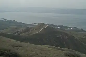 ![]() Widok na kibuc En Gew i jezioro Tyberiadzkie | |