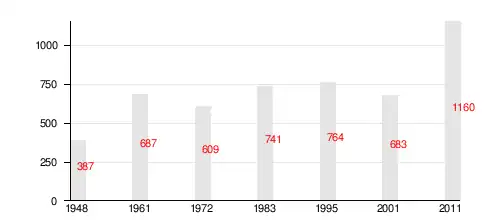 - ↑ Dane statystyczne z lat 1948-1995. [w:] Israel Central Bureau of Statistics [on-line]. [dostęp 2013-04-27]. (hebr.).