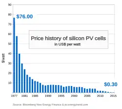 - ↑ Solar Price, Cell (Per Watt). EnergyTrend. [dostęp 2019-12-23]. (ang.).