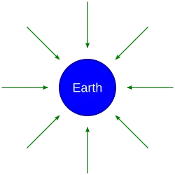 przy czym wykonane tu przybliżenie jest słuszne, gdy przesunięcie ciała jest niewielkie wobec promienia Ziemi ( ≈ 6400 km, np. dla = 100 km popełniany błąd względny przybliżenia będzie wynosił 1,6%). Z prawa grawitacji Newtona wynika, że przyspieszenie, jakiego doznaje ciało o masie pod wpływem siły grawitacji wynosi