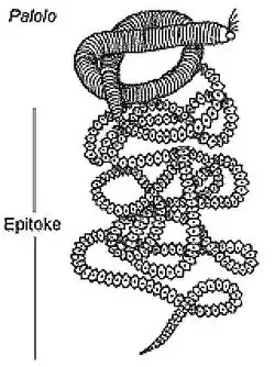 - ↑ H. Caspers. Spawning periodicity and habitat of the palolo worm Eunice viridis (Polychaeta: Eunicidae) in the Samoan Islands. „Marine Biology”. 79, s. 229-236, 1984. (ang.).