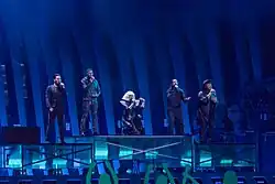 ![]() Equinox na konferencji prasowej po pierwszym półfinale Eurowizji 2018 w Lizbonie | |