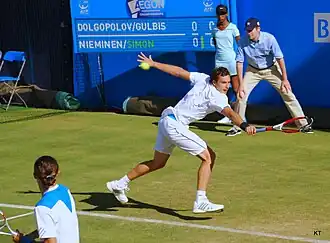 - ↑ Berdych loses to Gulbis in 1st round of Wimbledon. usnews.com, 25 czerwca 2012. [dostęp 2012-07-11]. (ang.).