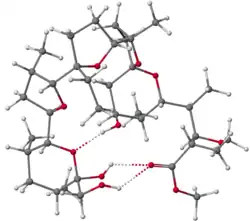 - ↑ Y. Inagaki, T. Shishido. Reaction of monensin silver salt with methyl iodide: smooth alkylation of a tightly hydrogen-bonded carboxylate. „Supramolecular Chemistry”. 23, s. 19–21, 2011. DOI: 10.1080/10610278.2010.506550. (ang.).
