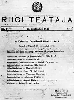 Ruch opozycyjny utworzył w marcu 1944 Komitet Narodowy Republiki Estońskiej (Eesti Vabariigi Rahvuskomitee). Komitet składał się z działaczy przedwojennych partii opozycyjnych. EVR miał na celu utworzenie niepodległego rządu Estonii, gdy wojska hitlerowskie wycofają się z kraju pod naporem Armii Czerwonej. Estoński Rząd Narodowy został ogłoszony 18 września 1944, powołano niezależne jednostki wojskowe, które zajęły następnie budynki rządowe nazistowskiego okupanta w Toompea[6].
