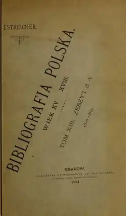 - ↑ Maria Dembowska, Metoda bibliografii polskiej Karola Estreichera, wyd. 3, 2001.