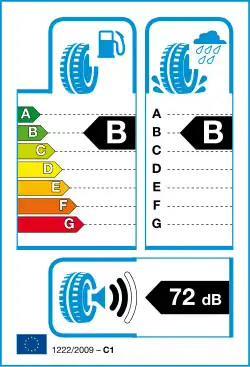 Klasy efektywności energetycznej A-G dla opon dotyczą tzw. efektywności paliwowej – określanej na podstawie współczynnika oporu toczenia (RRC). Na podstawie skali A-G oceniana jest także klasa przyczepności na mokrej nawierzchni. Trzecim kryterium oceny opony jest poziom emitowanego hałasu wyrażony w decybelach oraz za pomocą rysunku z rosnącą liczbą fal wydobywających się z głośnika[18]. Etykiety energetyczne dla opon obowiązują od 1 listopada 2012[19].