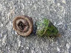 - Żeberkowana, półkolista, wielonasienna torebka pękająca na szczycie.