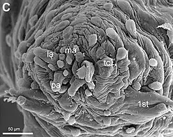 ![]() Euritmia carolensis, widok z boku, la: czułek boczny, pa: głaszczek | |||