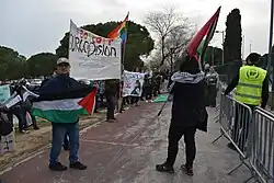 W wyniku trwającej wojny Izraela z Hamasem pojawiły się głosy o niedopuszczeniu do udziału w konkursie izraelskiej telewizji. W obliczu kryzysu humanitarnego wywołanego przez działanie izraelskich wojsk na terytorium Palestyny, jako gest solidarności z Palestyńczykami, społeczności i organizacje w m.in. Belgii[89], Danii[90], Finlandii[91][92], Hiszpanii[93][94], Islandii[95][96], Irlandii[97][98], Norwegii[99], Słowenii[100] oraz organizującej konkurs Szwecji[101][102] podjęły się protestów i nawoływały do bojkotu wydarzenia[103][104]. W reakcji na te głosy Europejska Unia Nadawców (EBU) wskazała, iż Izrael spełnia wszystkie kryteria uczestnictwa, a sama Eurowizja jest konkursem państw, a nie rządów[105][106]. Członkowie ruchu pokojowego „Bojkot, Wycofanie Inwestycji i Sankcje” oraz organizacje wspierające prawa osób LGBT w Palestynie argumentowały, że udział tego kraju w konkursie stanowi próbę zatajania lub ukrywania występków i przestępstw popełnianych przez reżim (tzw. „whitewashing”) oraz wykorzystanie sztuki i artystów w pozytywny sposób, aby odwrócić uwagę od negatywnych działań jednostki, organizacji, kraju lub rządu („artwashing”)[107][108].