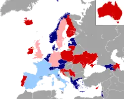 | Każdy kraj przyznaje po 1–8, 10 oraz 12 punktów dla dziesięciu najlepiej ocenionych piosenek: w półfinale wyłącznie w głosowaniu telewidzów, a w finale – osobno w głosowaniu komisji jurorskich i telewidzów. Widzowie z krajów nieuczestniczących przyznają jeden zestaw punktów. | |||||||||