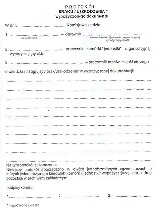 Na ewidencję archiwum zakładowego składają się następujące druki: