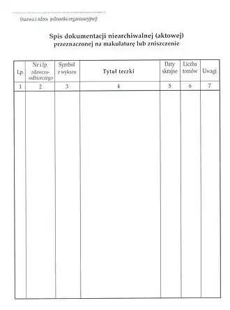 Spisy dokumentacji przeznaczonej na makulaturę lub zniszczenie