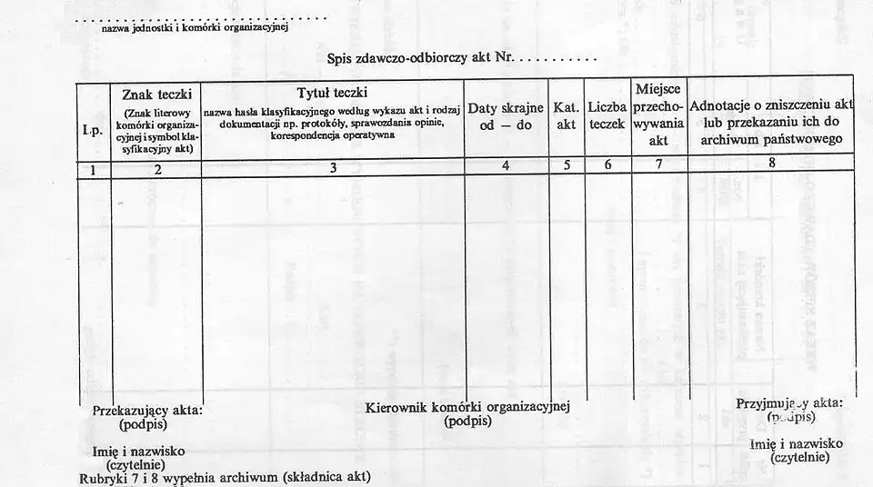 Spisy na materiały archiwalne przekazane do archiwum państwowego powinny być przechowywane w oddzielnej teczce, w układzie chronologicznym.