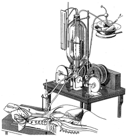 ![]() Klatka z filmu, przedstawiająca głowę psa utrzymywaną przy życiu z zastosowaniem zewnętrznego krążenia krwi | |