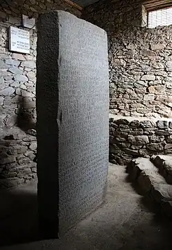 Ezana upamiętnił szereg swoich podbojów, wypraw wojennych, sięgających w głąb Afryki aż po rzekę Nil w trzech językach – greckim, sabejskim i gyyz. Jedna z inskrypcji, wypisana na cześć podboju i deportacji ludu Bedża głosiła: