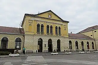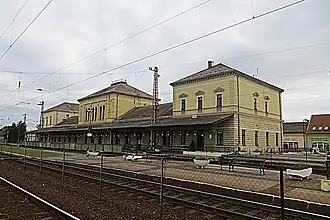 Budynek stacji z 1893 zaprojektowany przez Pfaffa Ferenca. Według legendy zbyt duży budynek stacji wybudowano myląc stacje Füzesabony i Fiume.