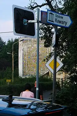 - 1 2 Powstała ze 170 tys. kwadracików. Mozaika w Kowarach doczeka się remontu [online], architektura.muratorplus.pl [dostęp 2025-03-16].