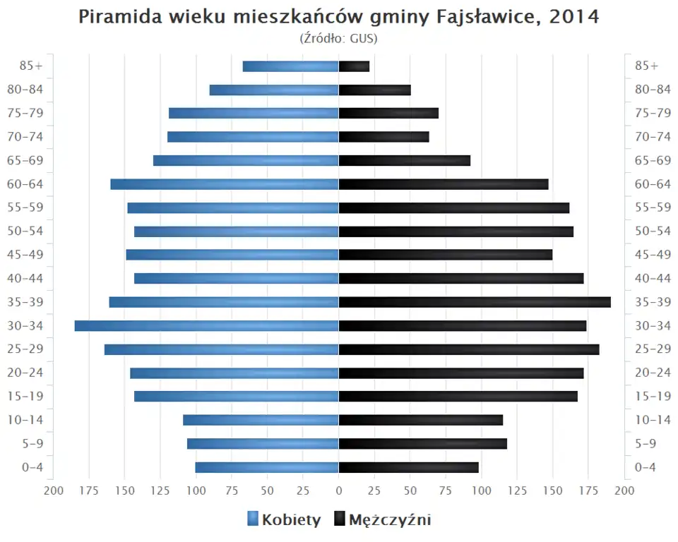 - Piramida wieku mieszkańców gminy Fajsławice w 2014 roku[1].