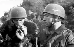- ↑ Brian C. Bell, K. Lyles: Wehrmacht combat helmets, 1933-1945, s. 14-15.