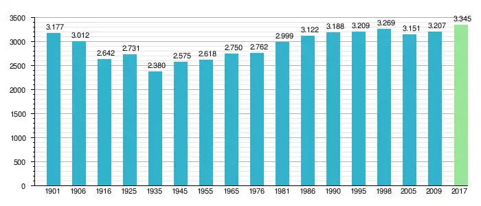 - Wykres liczby ludności Fanø na przestrzeni ostatniego stulecia