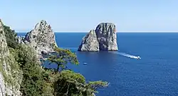 Faraglioni – formacje skalne wypiętrzające się z morza w pobliżu lądu. Przez erozyjną działalność wody i wiatru mają ostre kształty. Najbardziej znane są skały znajdujące się w pobliżu wyspy Capri, przy wejściu do Marina Piccola. Grupę trzech Faraglioni tworzą:
