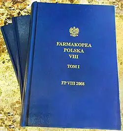 - Farmakopea Polska VIII (tom I–III, 2008, oraz suplementy w 2009 i 2010), na podstawie Ph. Eur. 6