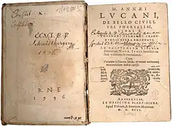 - Wyiątki z Farsalii Lukana. Franciszek Ksawery Dmochowski (tłum.) [w:] Pisma rozmaite Franciszka Xawerego Dmochowskiego, cz. I. Warszawa: 1826.