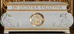 25 listopada 1966 jej szczątki przeniesiono do kaplicy klasztornej[41]. W 1968 kaplica ze względu na grób Sługi Bożej została wpisana na listę sanktuariów archidiecezji krakowskiej. Do beatyfikacji relikwie spoczywały w naturalnych rozmiarów trumnie. Obecnie znajdują się w sarkofagu na ołtarzu, pod słynącym łaskami obrazem Jezu ufam Tobie, namalowanym przez Adolfa Hyłę. Relikwiarz został odsłonięty w dzień beatyfikacji zakonnicy, 18 kwietnia 1993.