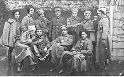 Od kwietnia 1917 jako dowódca konnego oddziału zwiadowców pełnił służbę w 3 pułku Strzelców Polskich[5]. 7 kwietnia 1917 tworzył Polski Szturmowy Szwadron Huzarów, z którym walczył do czasu załamania się frontu rosyjskiego. Podczas walk z chłopami atakującymi dwory[8] w rejonie Płoskirowa został ranny[5]. Po zawarciu układu z magnatem Józefem Potockim podjął się ochrony jego rezydencji w Antoninach. Zbuntowanych chłopów zabijał, a wsie palił[9].