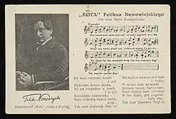 - pieśń Rota („Nie rzucim ziemi skąd nasz ród”, 1910)