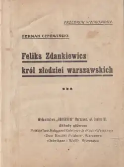 - ↑ Herman Czerwiński, Feliks Zdankiewicz król złodziei warszawskich, Warszawa : "Uniwersum", 1933, Biblioteka Universum, nr 48