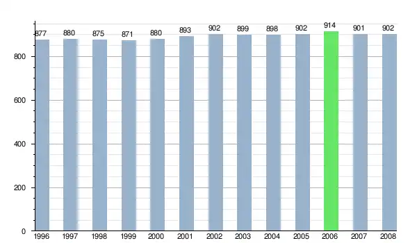 Według danych z dnia 31 grudnia 2012, wieś zamieszkiwało 914 osób, w tym 463 kobiety i 451 mężczyzn[6].