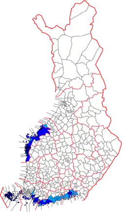 Jasnoniebieski: gminy z większością fińskojęzyczną