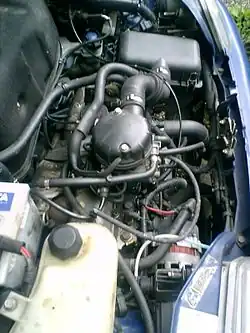 Silnik montowany był poprzecznie do osi głównej pojazdu nad osią przednią. Zastosowano w nim żeliwny kadłub oraz głowicę odlewaną ze stopów aluminium[30]. Rozrząd napędzany był za pośrednictwem paska zębatego i jednego wałka znajdującego się w głowicy (OHC). Żeliwny wał korbowy podparty został w pięciu łożyskach głównych[30].