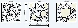 Na ilość i rozkład włókien w kompozycie cementowym wpływ ma także wielkość ziaren kruszywa. Włókna są bardziej równomiernie rozłożone w mieszance betonowej gdy wielkość kruszywa mieści się w przedziale od 4 do 8 mm. Kruszywo grube uniemożliwia równomierny rozkład włókien. W ten sposób kompozyt uzyskuje najlepsze efekty wytrzymałościowe[1].