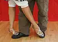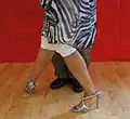 | Mordida (sandwich, sanguche, sanguchito) | Kanapka (sandwicz) | Prowadzący stawia swoje stopy po obu stronach stopy partnerki, przez co blokuje chwilowo jej ruch. | ![]() | |